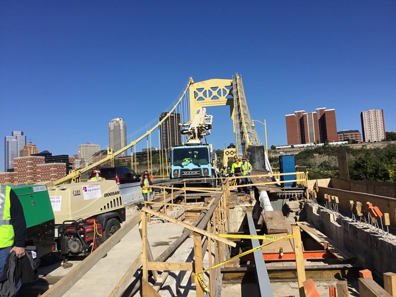 Management Engineering Corporation (MEC) is currently providing Construction Management, Inspection & CPM Scheduling Services on the $20M Rehabilitation of the South 10th Street Bridge for Allegheny County Department of Public Works. This total rehabilitation bridge project consists of new suspension cable vault roofs and walls, new bituminous approach roadways, new bituminous overlay of the existing grid deck, new dehumidification system for the main suspension cables and complete bridge painting.